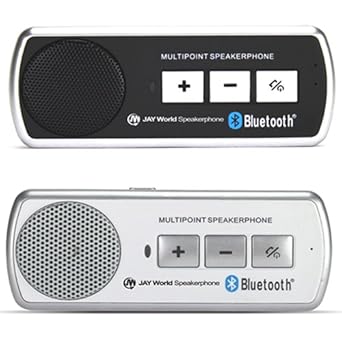 JAY World Drive Safe Bluetooth Handsfree Car Kit. The Original Multipoint Bluetooth Speakerphone. Supports: Apple iPhone, Blackberry, HTC, Samsung, Galaxy S3, Galaxy S2, Sony, Nokia and any Bluetooth enabled device. Safer Driving. Uses low power consumption and DSP (Digital Signal Processing) for echo cancellation & noise suppression providing pure clear sound. Talk time up to 16 hrs. Standby time up to 45 days. Can be charged via laptop/pc or in car. Automatic switch off function after disconnection with phone saving power